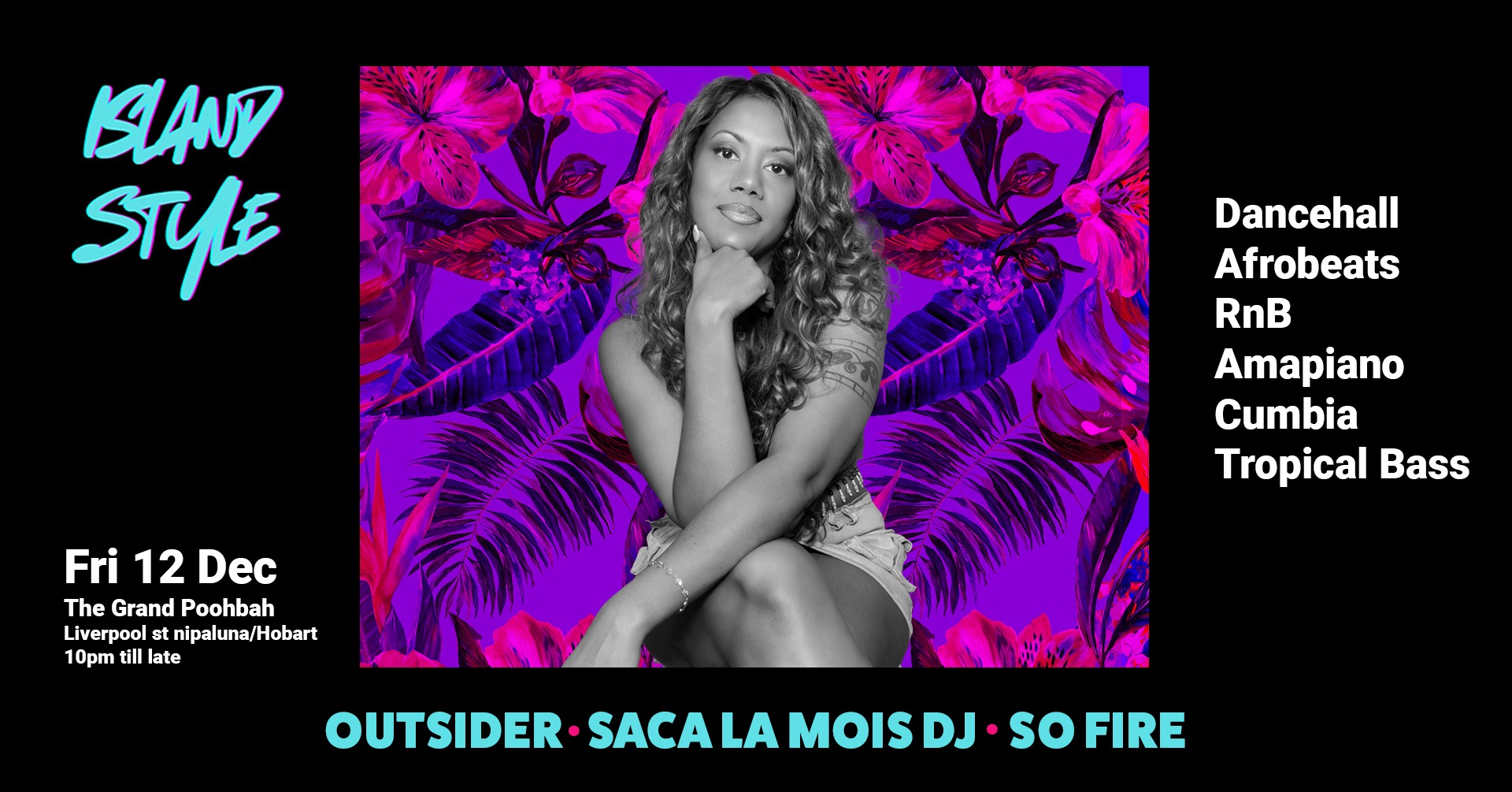 🌺🌴 Celebrate the end of the year with us at Island Style on Friday 12 Dec at the Grand Poohbah🌺🌴 Expect good vibes and the finest in Dancehall, Afrobeats, Tropical Bass, and Hip Hop – up to di time and classics — heavyweight sound and energy that doesn’t quit.