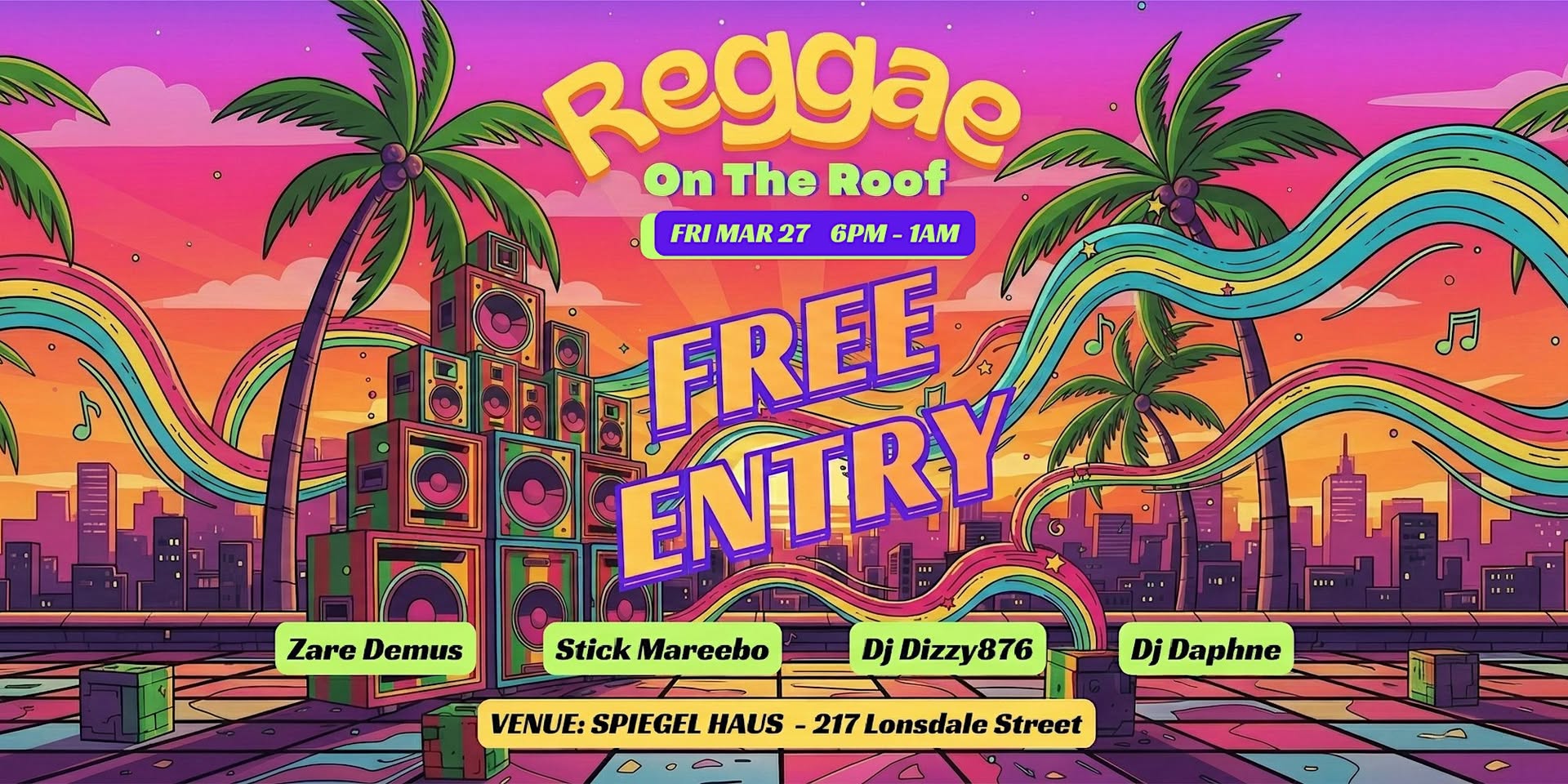 Expect reggae, dub and dancehall selections from four of Melbourne’s finest selectors: DJ Daphne, DJ Dizzy (JA), Zare Demus and Stick Mareebo.